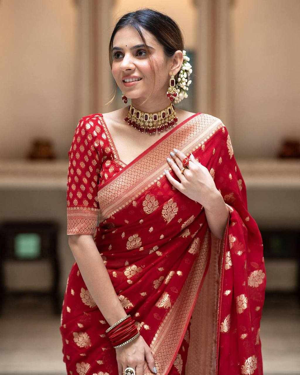 | Name : | KP-R 190 New Traditional Wear Red Saree |
