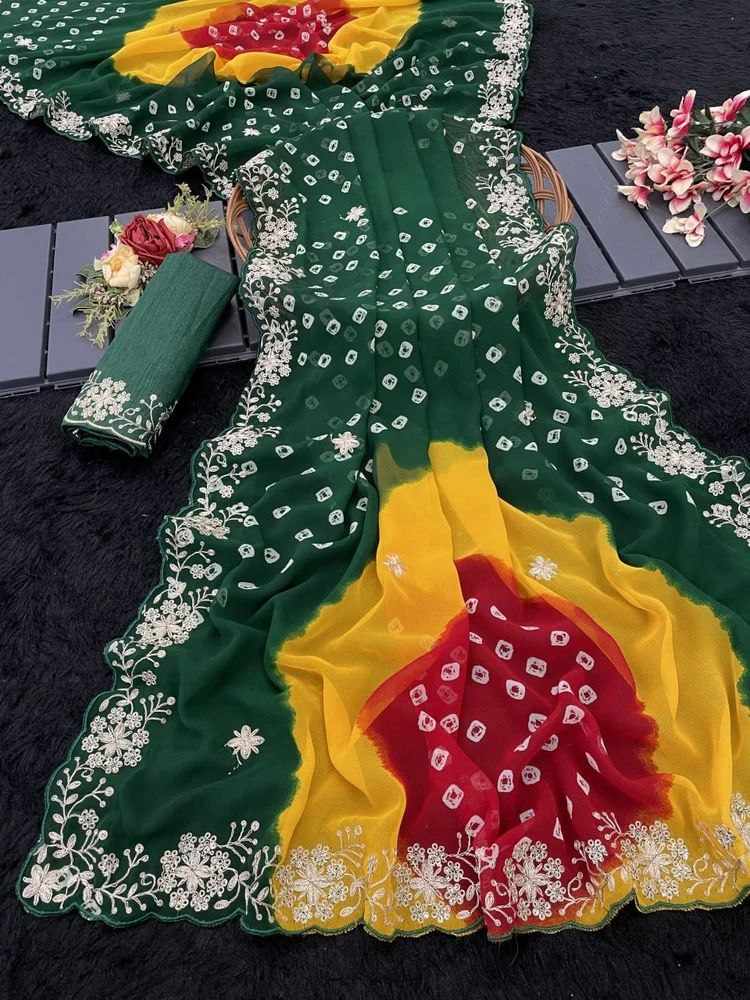 PIYU P1038 MULTI COLOR GREEN BANDHANI Saree