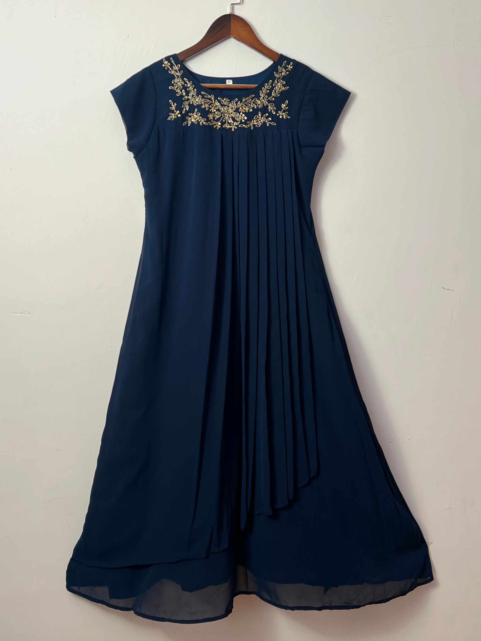 FABRIC - Blooming Georgette Handwork Kurti with Cap Designer Sleeves (Khatli - Maggam Wo